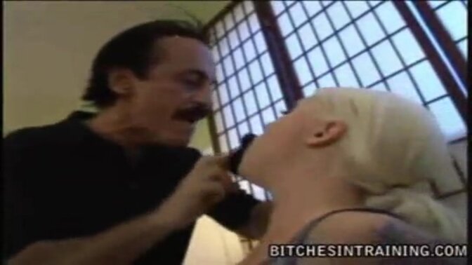 Blonde slave Lorelei Lee gets throat fucked and pussy fingered in threesome