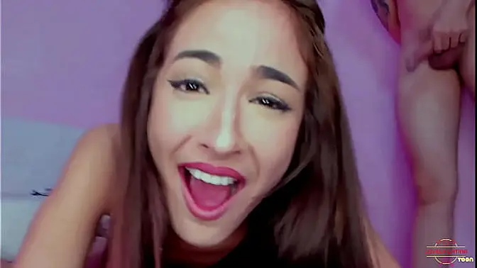 Submissive Latina teen gets double facial after deepthroat BJ and facefucking